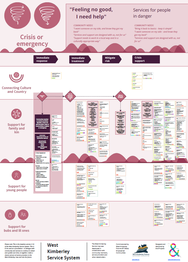 West Kimberley Futures, as part of the Empowered Communities initiative, has developed the West Kimberley Child and Family Wellbeing and Youth Wellbeing Service System Map to support greater visibility of services across the West Kimberley region.